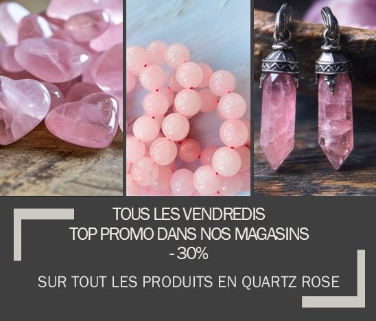 Minéral Création relance ses remise de -30% sur l'ensemble de ses Produits en Quartz rose tous les vendredis dans ses trois Magasins.